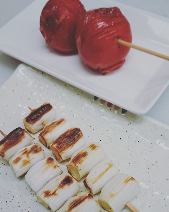 野菜串焼き「トマト串焼き」と「ねぎ串焼き」です❗