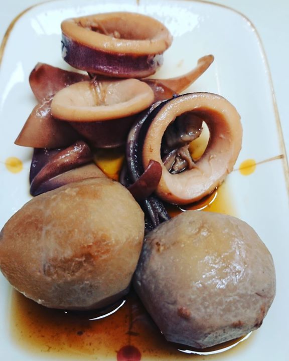 火曜日、休み明けです\(^^)/❗「里芋とイカ」の煮物です。
