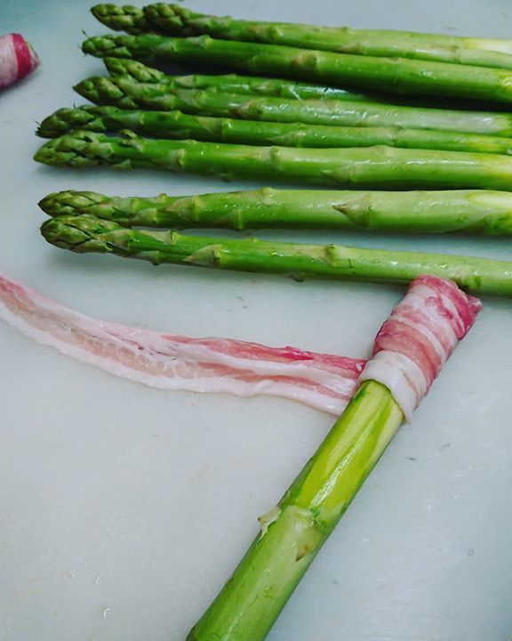 本日の肉巻き串ものは「アスパラ肉巻き」「トマト肉巻き」「おくら肉巻き」の、三種類です(^-^)/‼️