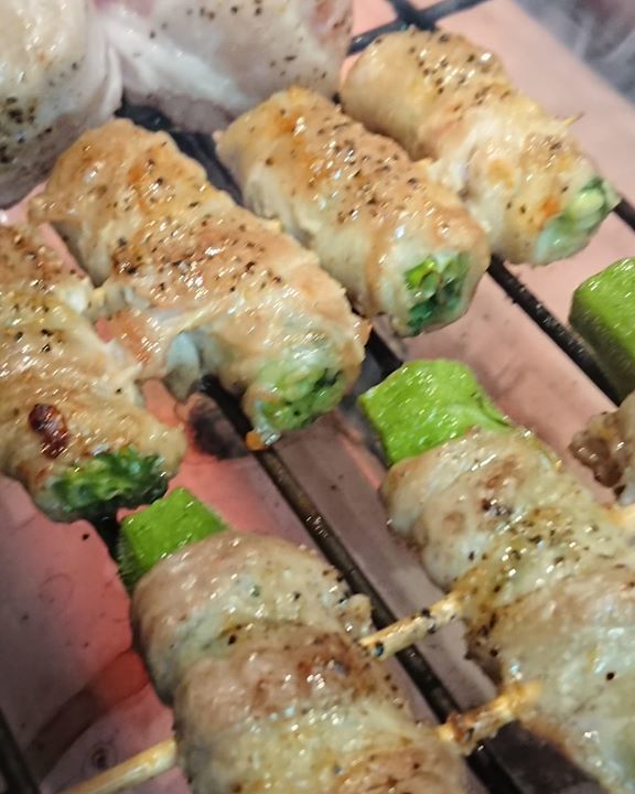 本日、営業しています❗肉巻き串焼きは「トマト肉巻き」「おくら肉巻き」「肉巻きネギ」の三種類です(^-^)/❗