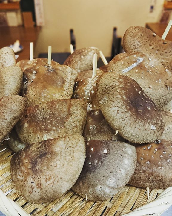 火曜日、休み明けです\(^^)/❗「しいたけ串焼き」あります(^-^)/❗その他には「ニンニク焼き」「なす焼き」「トマト串焼き」「ねぎ串焼き」などが、あります❗