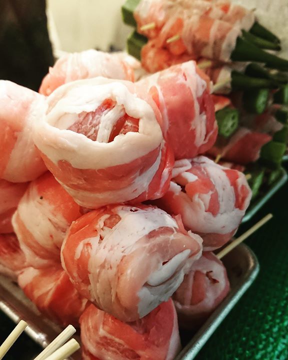 本日の肉巻き串ものは「トマト肉巻き」と「おくら肉巻き」です(^-^)/❗