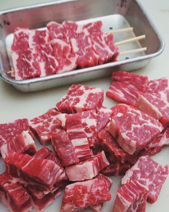 本日「牛肉串焼き」あります(^-^)/❗肩ロース肉です。