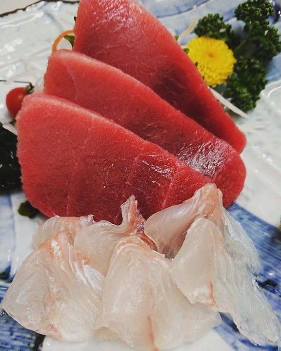 「まぐろと平目」の盛り合わせです(^-^)/❗平目は長崎県佐世保の水揚げです❗
