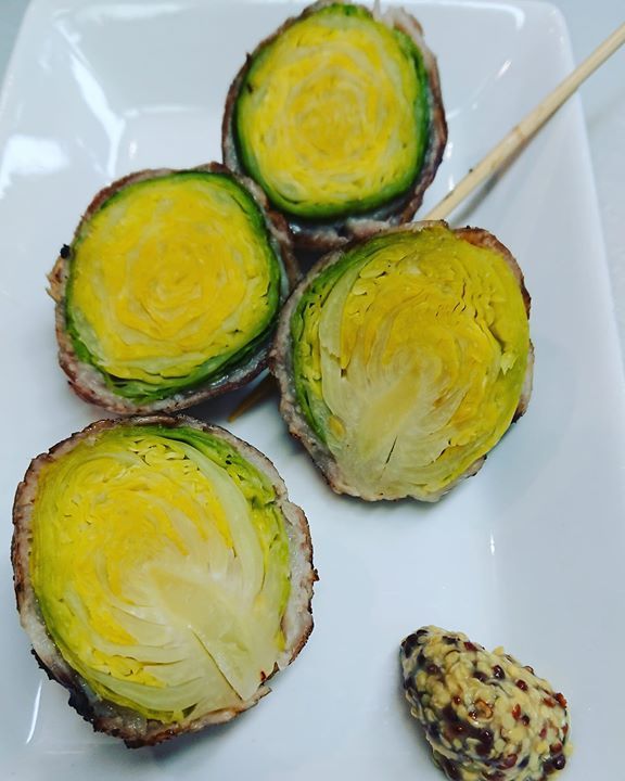あと少しでオフ⁉️「芽キャベツ肉巻き」です(^-^)/❗