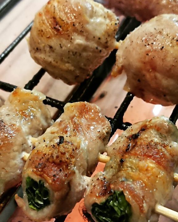 本日の肉巻き串ものは「トマト肉巻き」と「小ネギ肉巻き」です(^-^)/❗