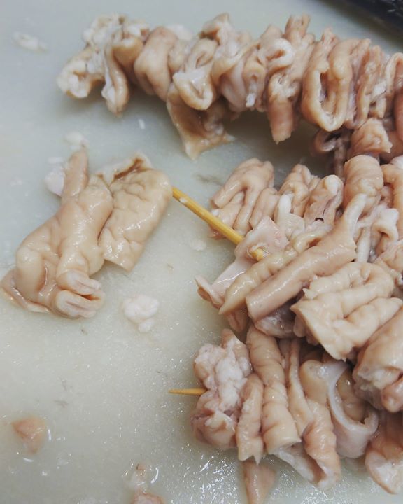 本日の串ものラストの仕込みは「豚しろ」でした(^-^)/❗