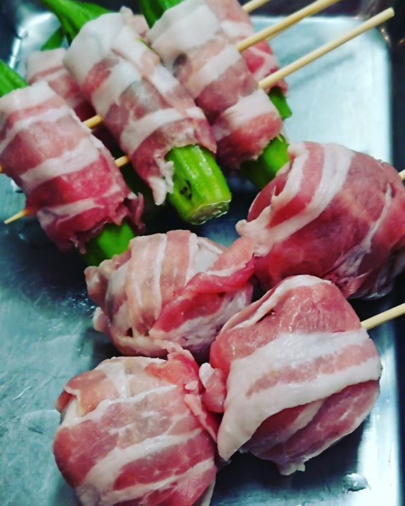 本日の肉巻き串ものは「トマト肉巻き290円(税別)」と「おくら肉巻き270円(税別)」です😄❗テイクアウトも出来ます😁❗