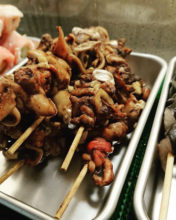 「うなぎ肝串焼き」久しぶりに仕込みました😄❗1本330円(税別)です。1串に5尾くらいのうな肝を、刺しています❗