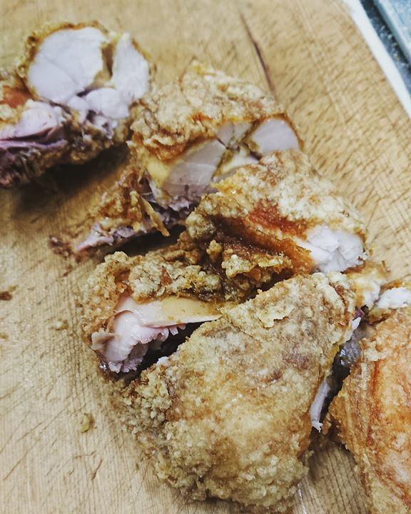 しぶや特製「若鳥半羽から揚げ」出来上がりました😀❗カレー風味です。一皿1200円(税別)です。