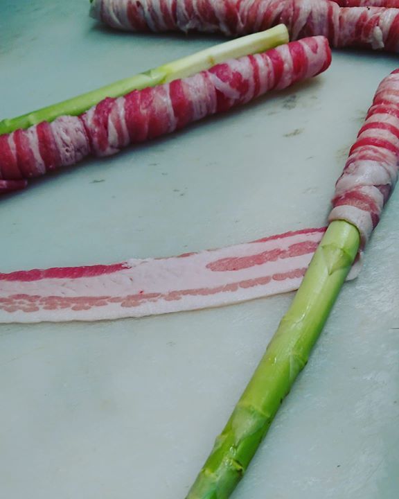 本日の肉巻き串ものは「アスパラ肉巻き270円」「トマト肉巻き290円」「おくら肉巻き270円」(税別)です😀❗