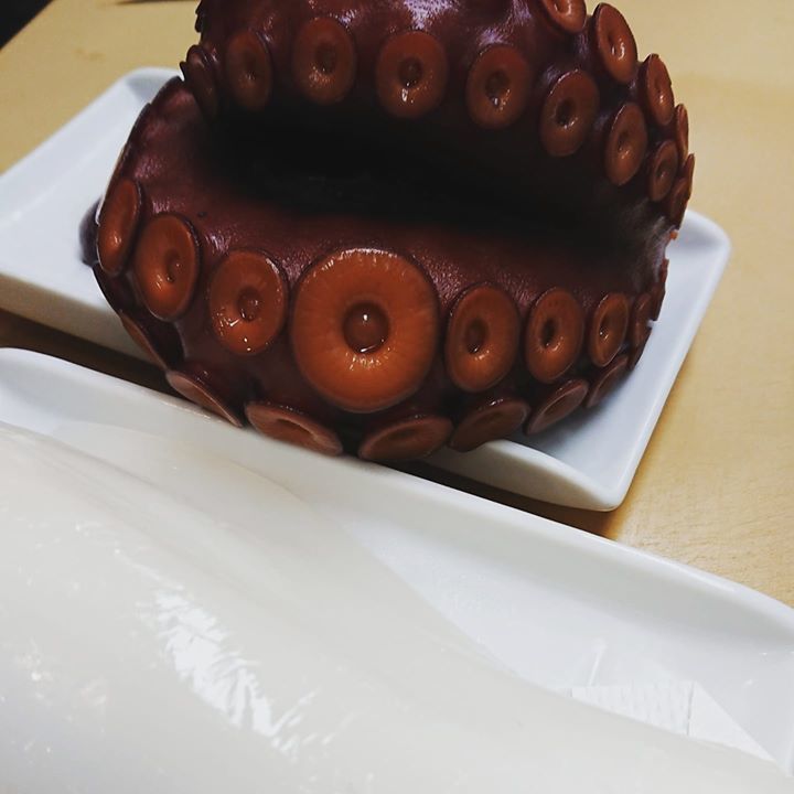 火曜日、休み明けです😀❗「たこ刺身・白いか刺身」あります❗たこは長崎県、白いかは福岡県の水揚げです。どちらも一人前880円(税別)です。