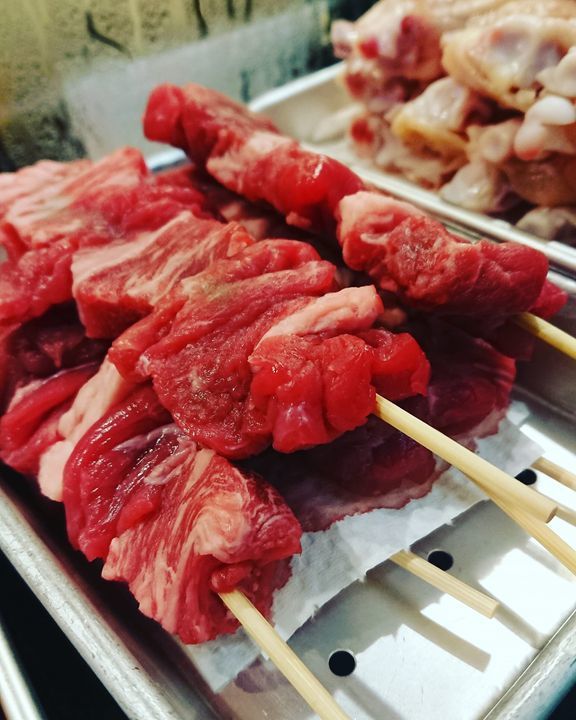 本日「牛肉串焼き」あります😃❗肩ロース肉です。1本380円(税別)です。