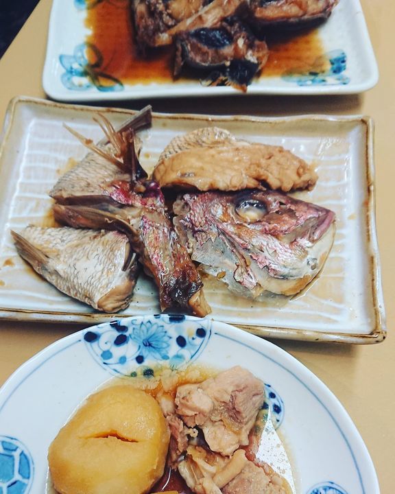 本日の煮物は「鳥肉の肉じゃが480円」「鯛のあら煮700円」「銀だらかま煮880円」(税別)です❗