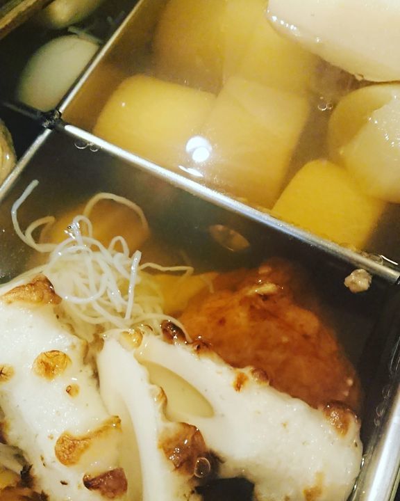 朝夕と冷えて来ますネ😐。「おでん🍢」温まっています😃❗一皿600円(税別)です。