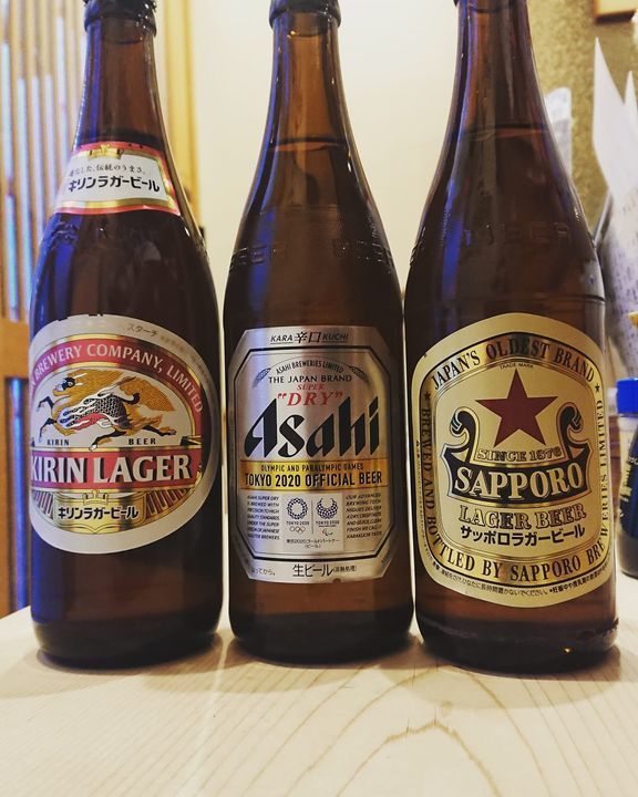 瓶ビール「キリン」「アサヒ」「サッポロ」を、ご用意しています😃❗各1本590円(税別)です。