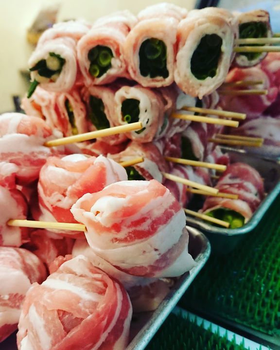 本日の肉巻き串ものは「トマト肉巻き290円」「芽きゃぺつ肉巻き270円」「小ネギ肉巻き270円」が、あります😃❗