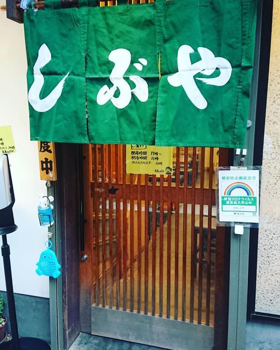 時短営業の日々😣気分転換に、以前の「のれん(緑色)」を掛けてみました😃❗