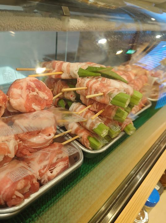 本日の肉巻き串物は『トマト肉巻き』『アスパラ肉巻き』『おくら肉巻き』です😀❗