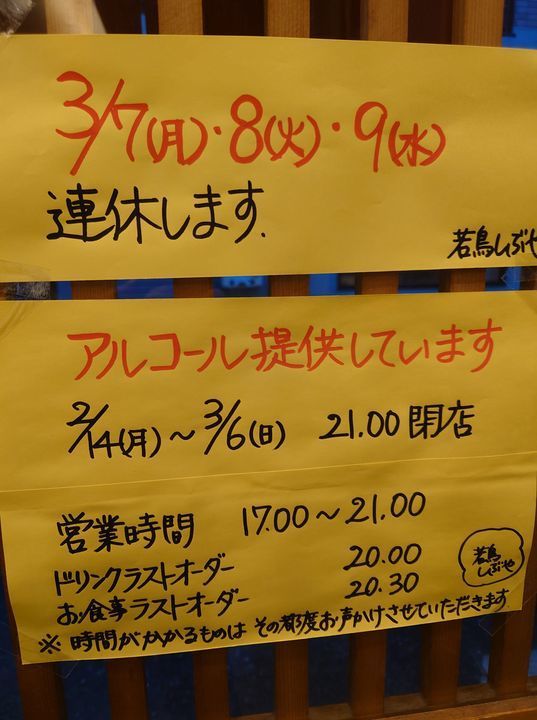 来週7日㈪〜9日㈬迄、連休させて頂きます😌❗ 若鳥しぶや