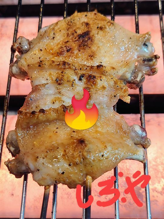 『手羽先串焼き』です❗塩・胡椒で味付けしています😋❗