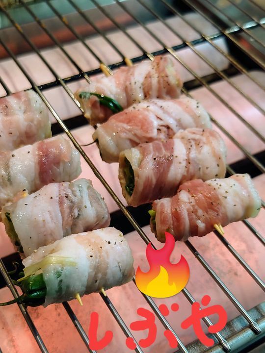 本日の肉巻き串物は『小ねぎ肉巻き』『トマト肉巻き』『おくら肉巻き』です😃❗