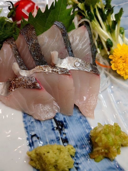 『炙りさわら刺し身』です❗柚子胡椒・わさび醤油どちらでもお好みで、どうぞ😃❗