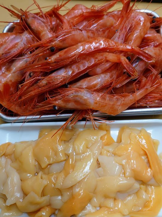 本日の北海道水揚げのお刺身は『甘えび』『青柳』『いわし』が、あります😃❗