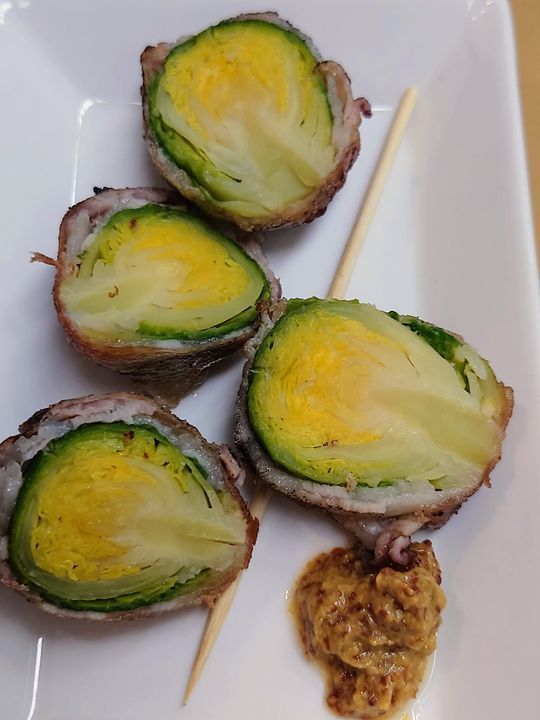 本日の肉巻き串ものは『芽きゃべつ肉巻き』『トマト肉巻き』です😃❗