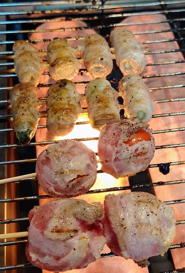 本日の肉巻き串ものは『アスパラ肉巻き』『トマト肉巻き』『芽きゃべつ肉巻き』です😄❗