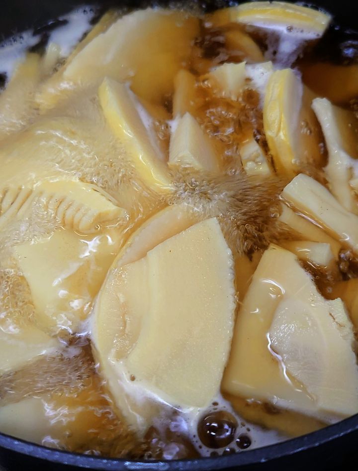 『新たけのこ煮』仕込んでいます😄❗ 4月17〜19日迄、連休させて頂きます😌!