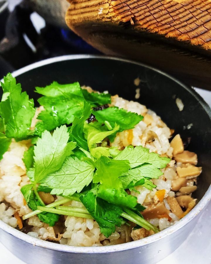 『五目釜めし』炊きあがりました😋❗その他に鮭・かに・ほたて・鳥ごぼうが、あります❗