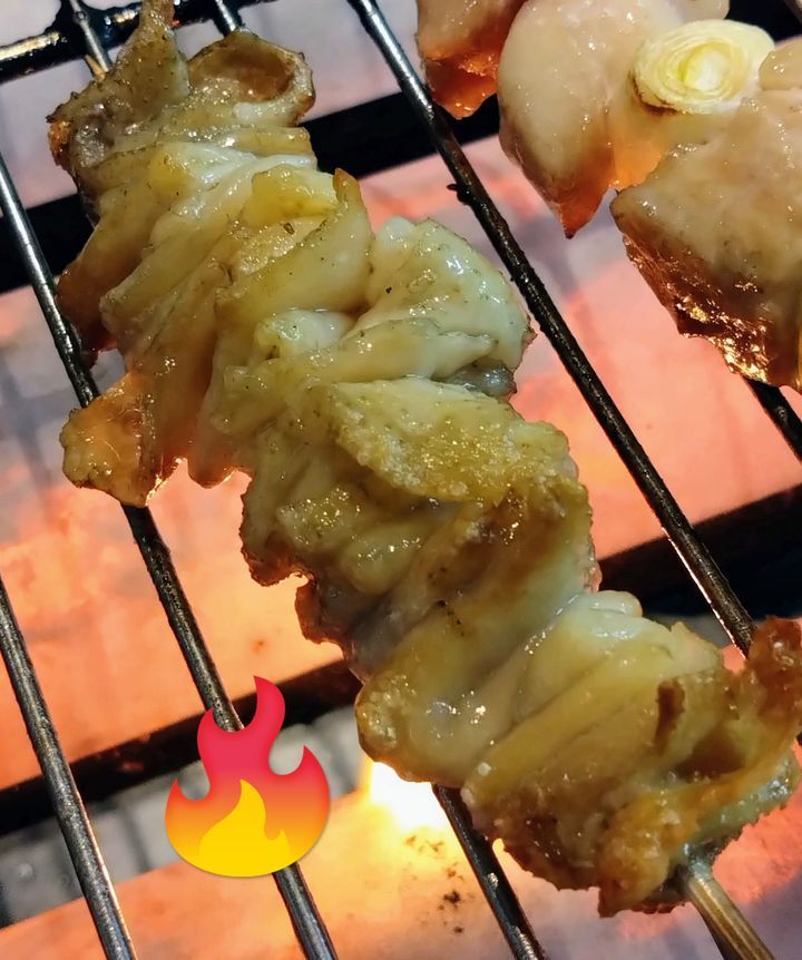 『鳥かわ串焼き』脂があるので炎🔥に注意⚠して焼きます😅❗