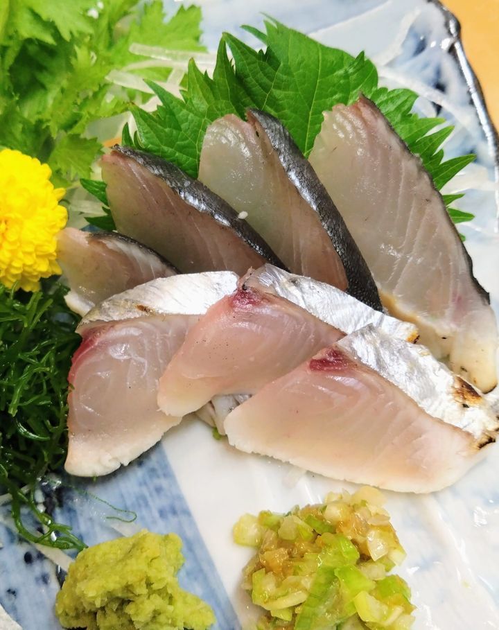 『炙りさわら刺身』です😃❗柚子胡椒・わさび醤油どちらでも、どうぞ❗