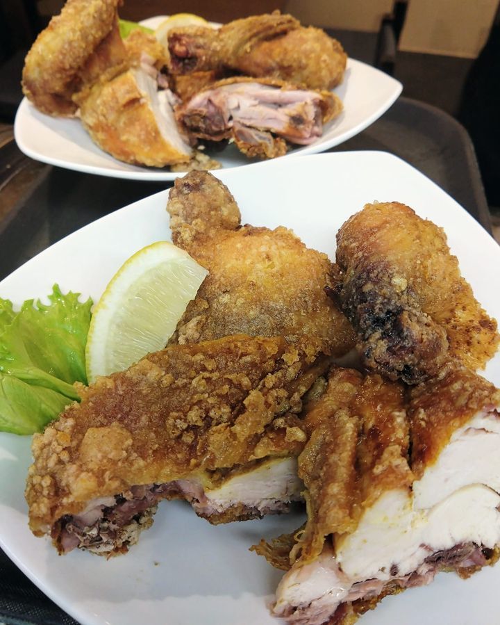 ご宴会の『若鳥半羽から揚げ』(カレー風味)揚げ上がりました😃❗ 来週の14㈪〜16㈬日まで連休致します(台風の影響により13日も休業の場合あり💦)😌!