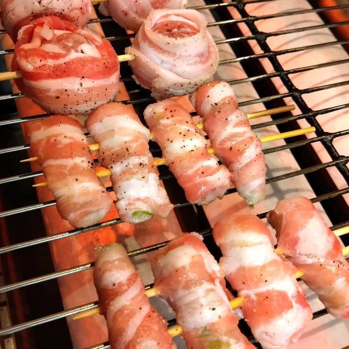 本日の肉巻き串物は『アスパラ肉巻き』『トマト肉巻き』です😃❗