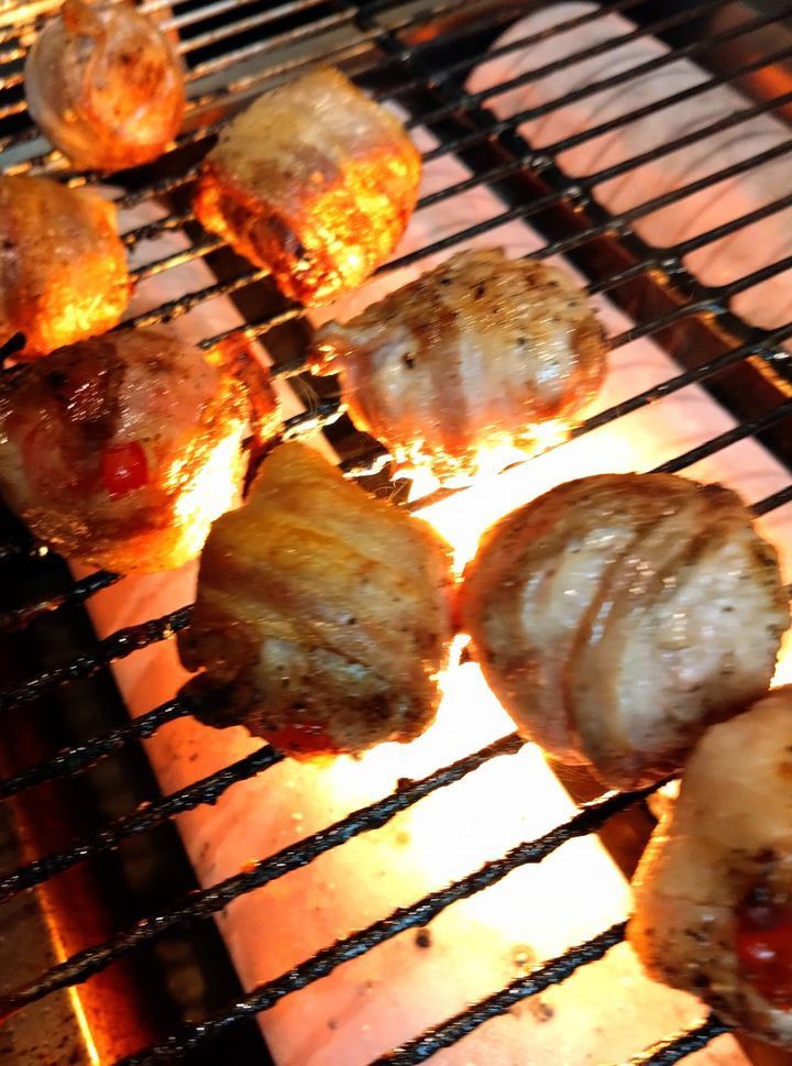 『トマト肉巻き串焼き🍅』です❗焼き立てはアツアツです🔥❗お気をつけ下さい😋❗
