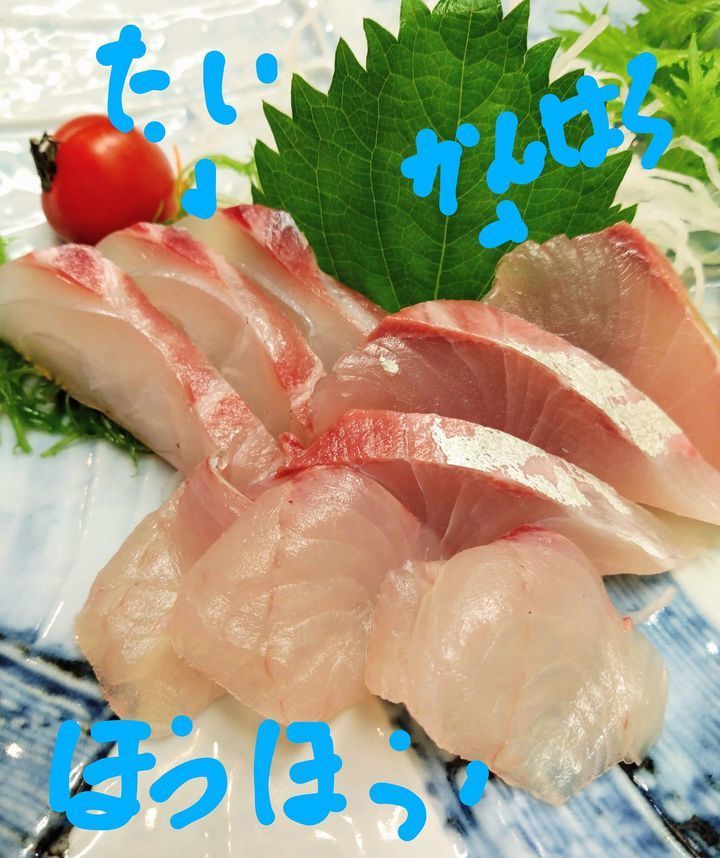『白身魚お刺身』です😃❗鯛・ほうぼう・かんぱちの三種盛りです❗