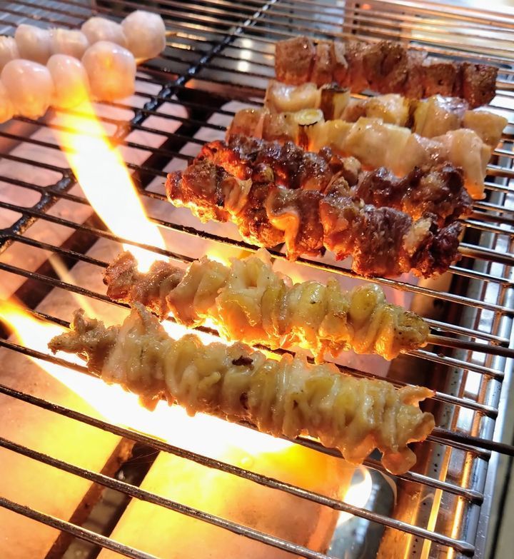 やきとりの『鳥かわ』焦げないよう炎🔥に注意です😅❗