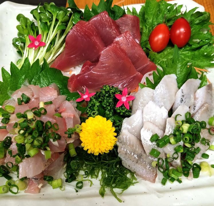 お刺身かつお・あじ・いわしの盛り合わせです😋❗ 来週13㈪・14㈫日は連休させて頂きます😌!